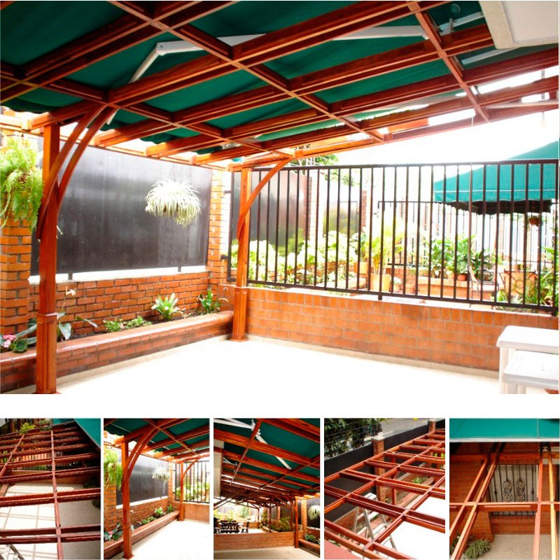 -Estrucutra en Madera -Sombrilla Retráctil -Brazos extendibles -Lona acrílica importada e impermeable
